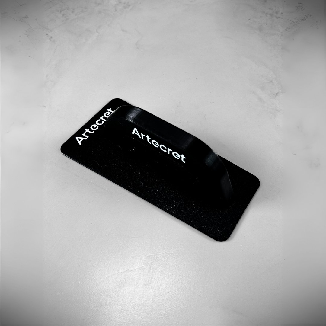 Llana plástica de acabado plano con hoja de acero inoxidable pulido, de tamaño compacto y diseño ligero que permite un fácil traslado, ideal para terminaciones delicadas como estuco veneciano, calcita, microcemento, efecto hormigón y toda la línea Artecret.